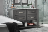 Whether you opt for the simplicity of a single sink base or the elegance of double drawer stacks, Estate brings your bath timeless refinement. SELECT YOUR CONFIGURATION Bungalow opens up a world of style possibilities to express your personal flair, whether you’re looking for an ornate double vanity with traditional furniture legs or a simple single sink option with straight legs and a slatted shelf.