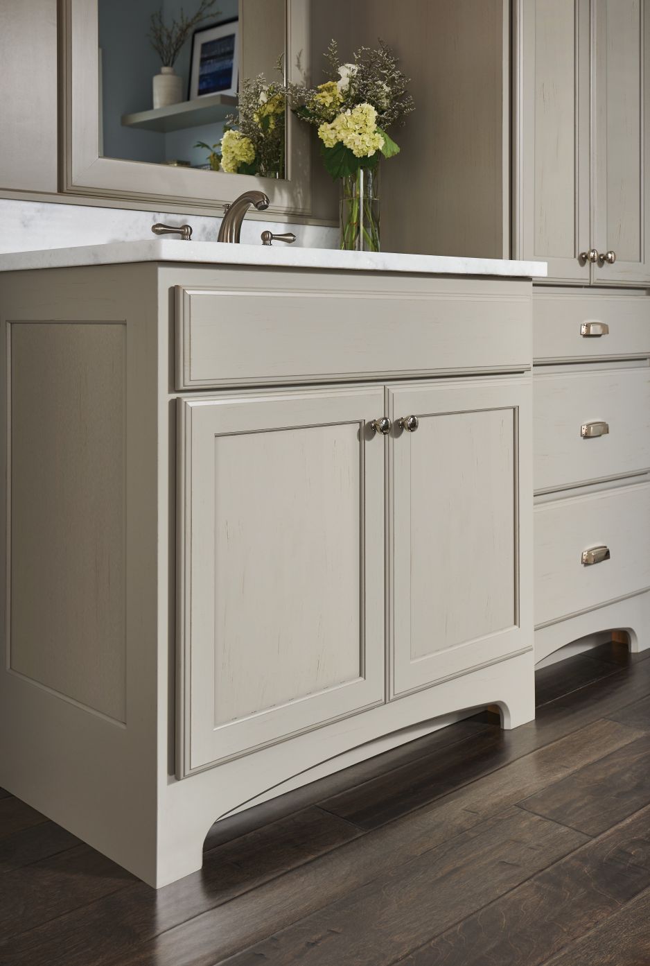 Timeless half overlay doors and an integrated toe kick valance bring simple elegance to your home.