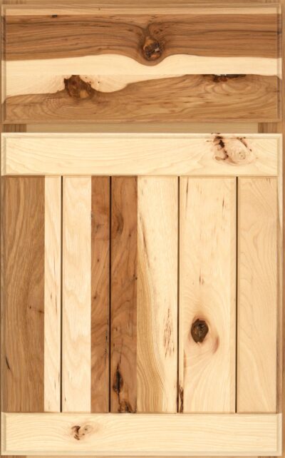 - HickoryHickory has a bold grain pattern. Color can vary dramatically within a single piece of wood: from almost white to a deep, dark brown. Burls, pin knots and mineral streaks are typical and are not considered defects.
