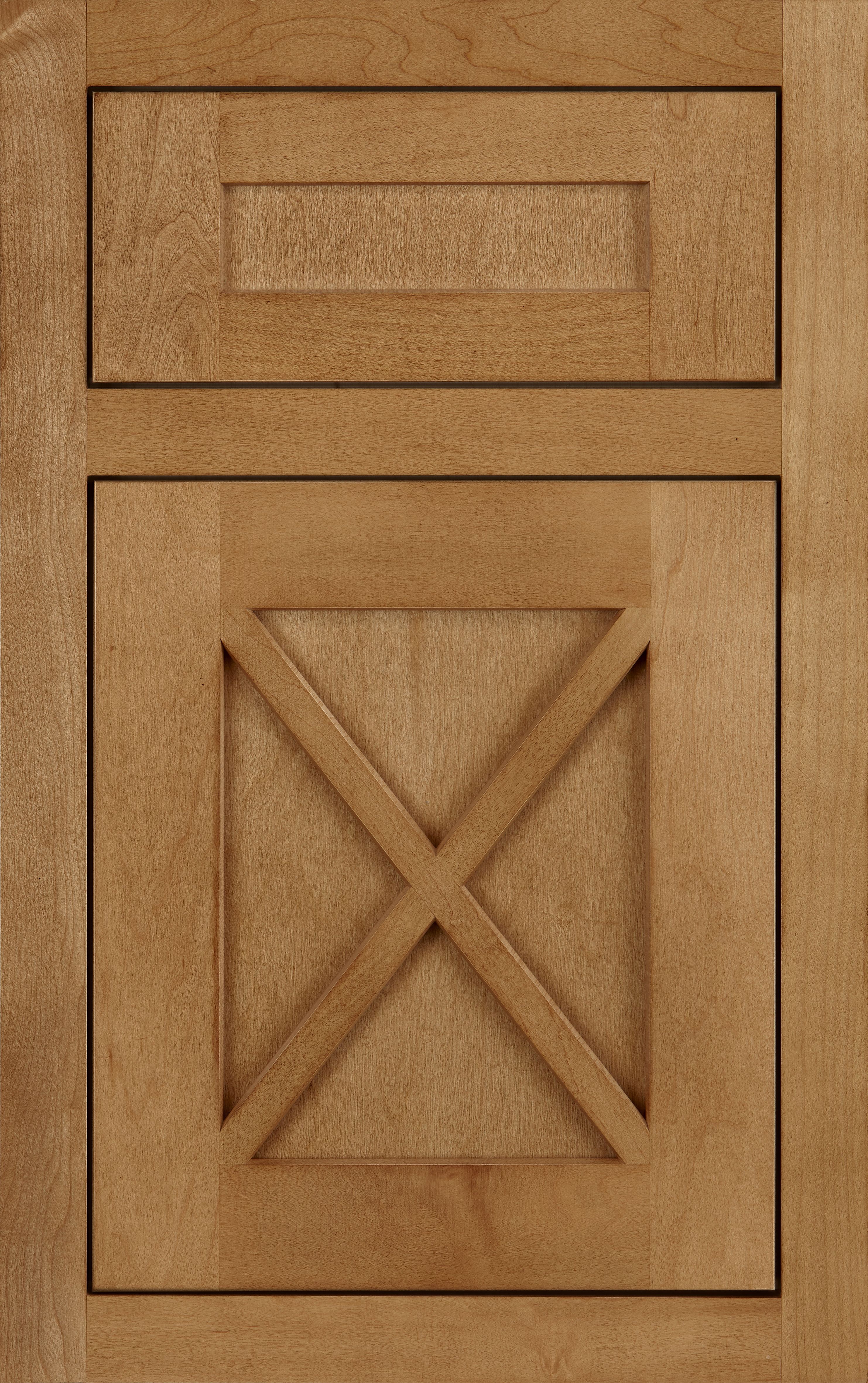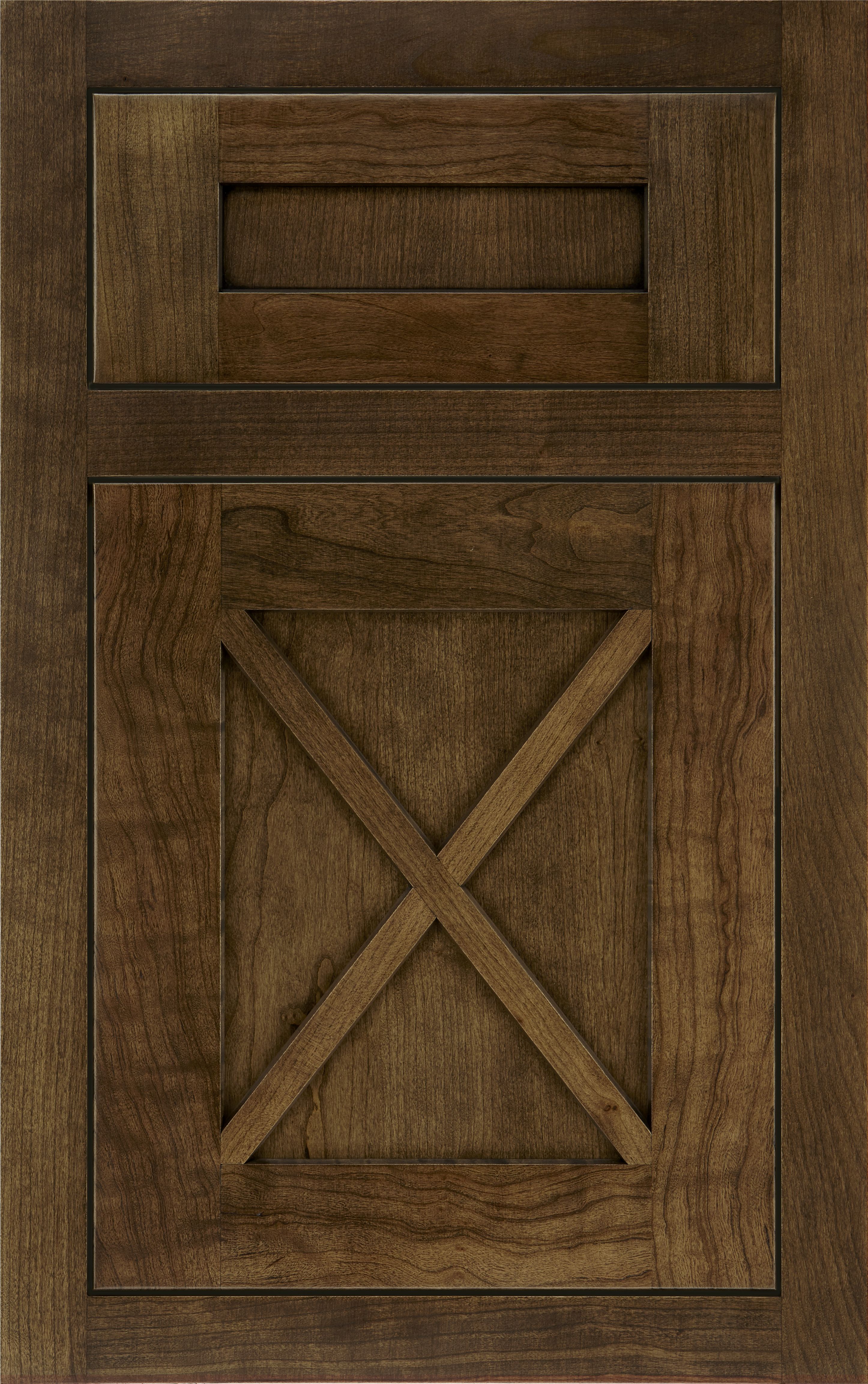 NOTE: When ordering this door style in a glaze and highlight finish, center panel of door will not receive glaze hang-up; center panel is finished separately from door frame due to decorative center mullion grid. It is recommended to order a sample door for proper representation of this door style/finish combination.
