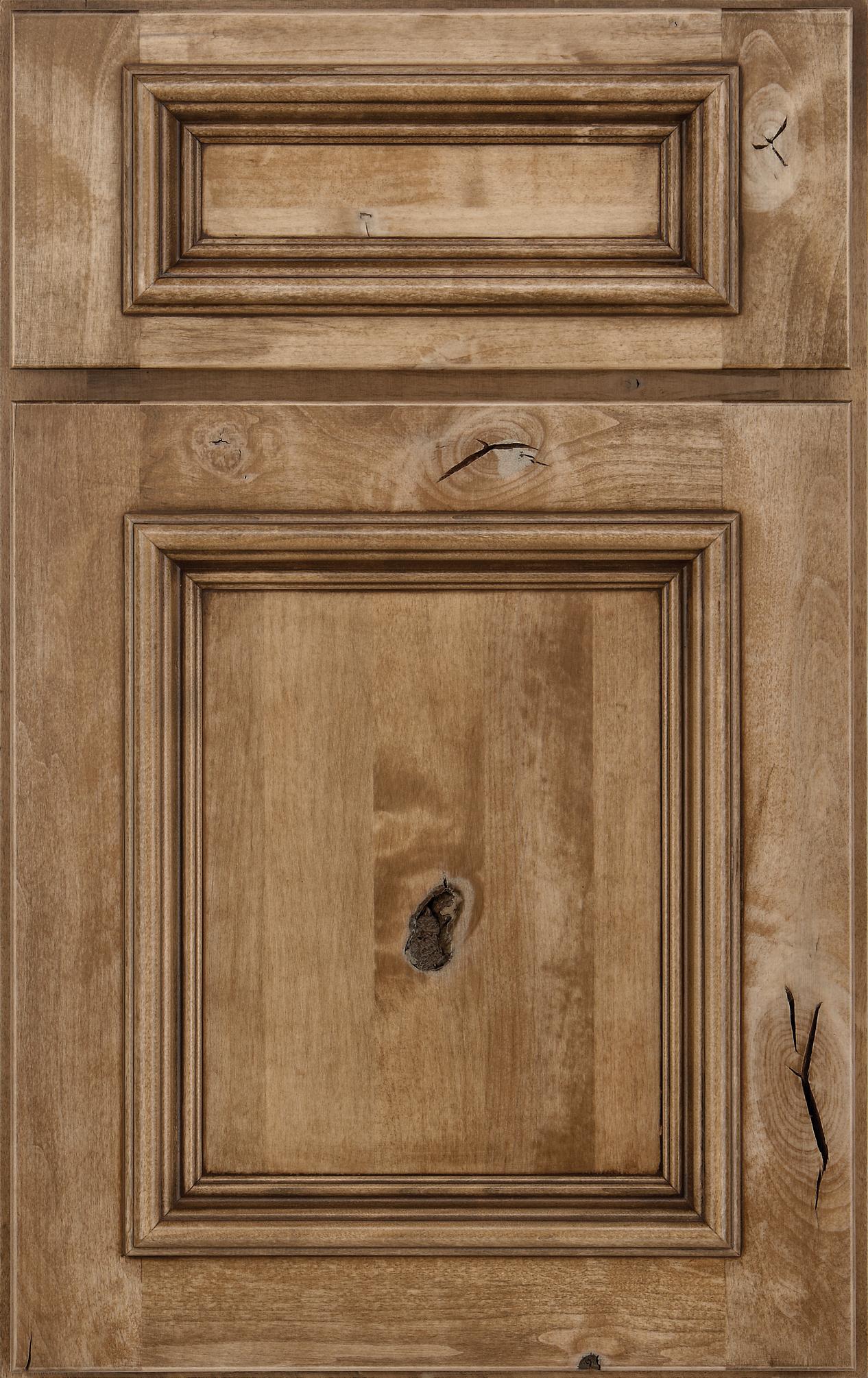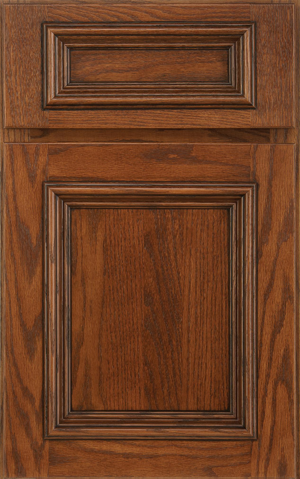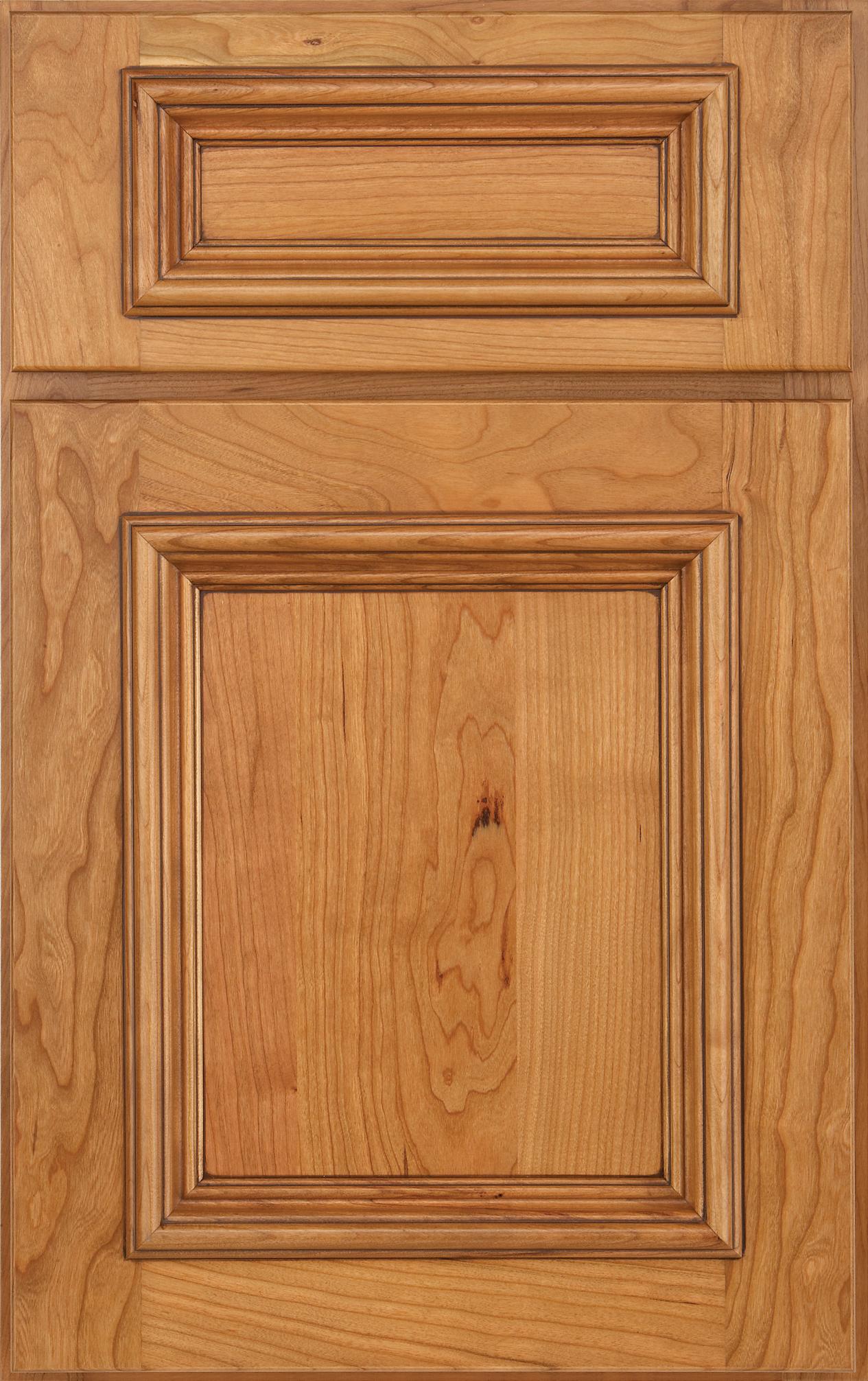 • Inside edges of five piece doors and drawer fronts feature large mitered molding.