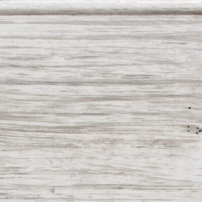 A cool white base color with warm grey and deep brown hand-applied accents and features.