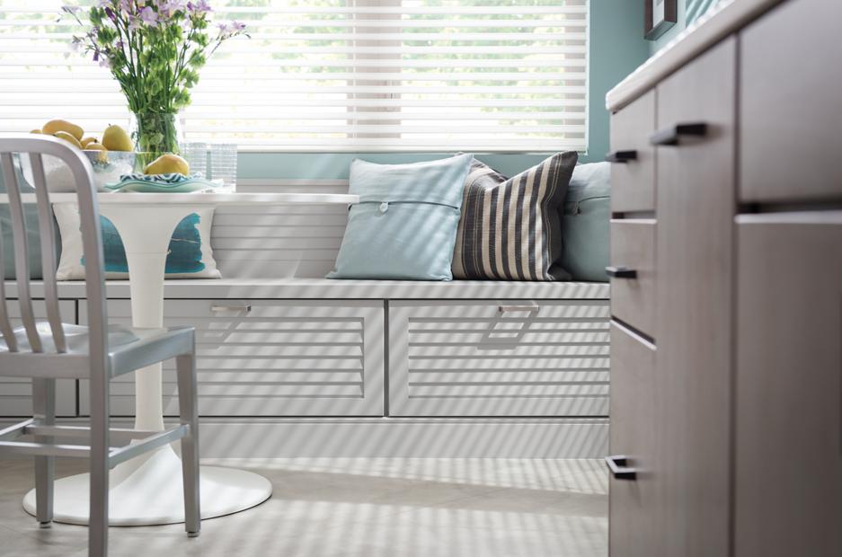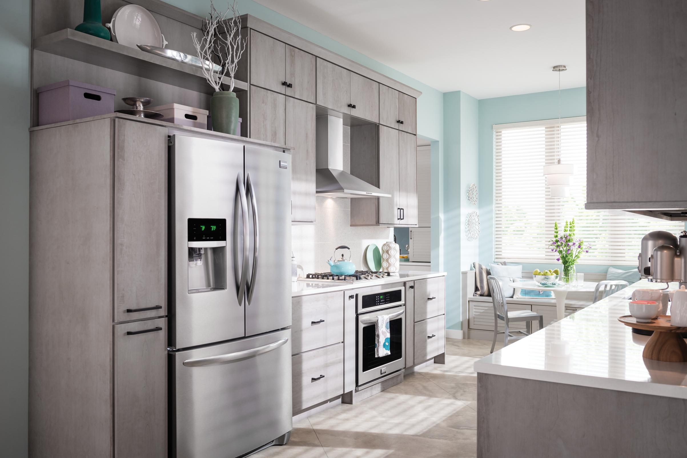 You don’t have to sacrifice function for fashion—we’ve got a storage solution for every appliance, utensil, and gadget behind Gilmore’s polished, Peppercorn cherry doors.