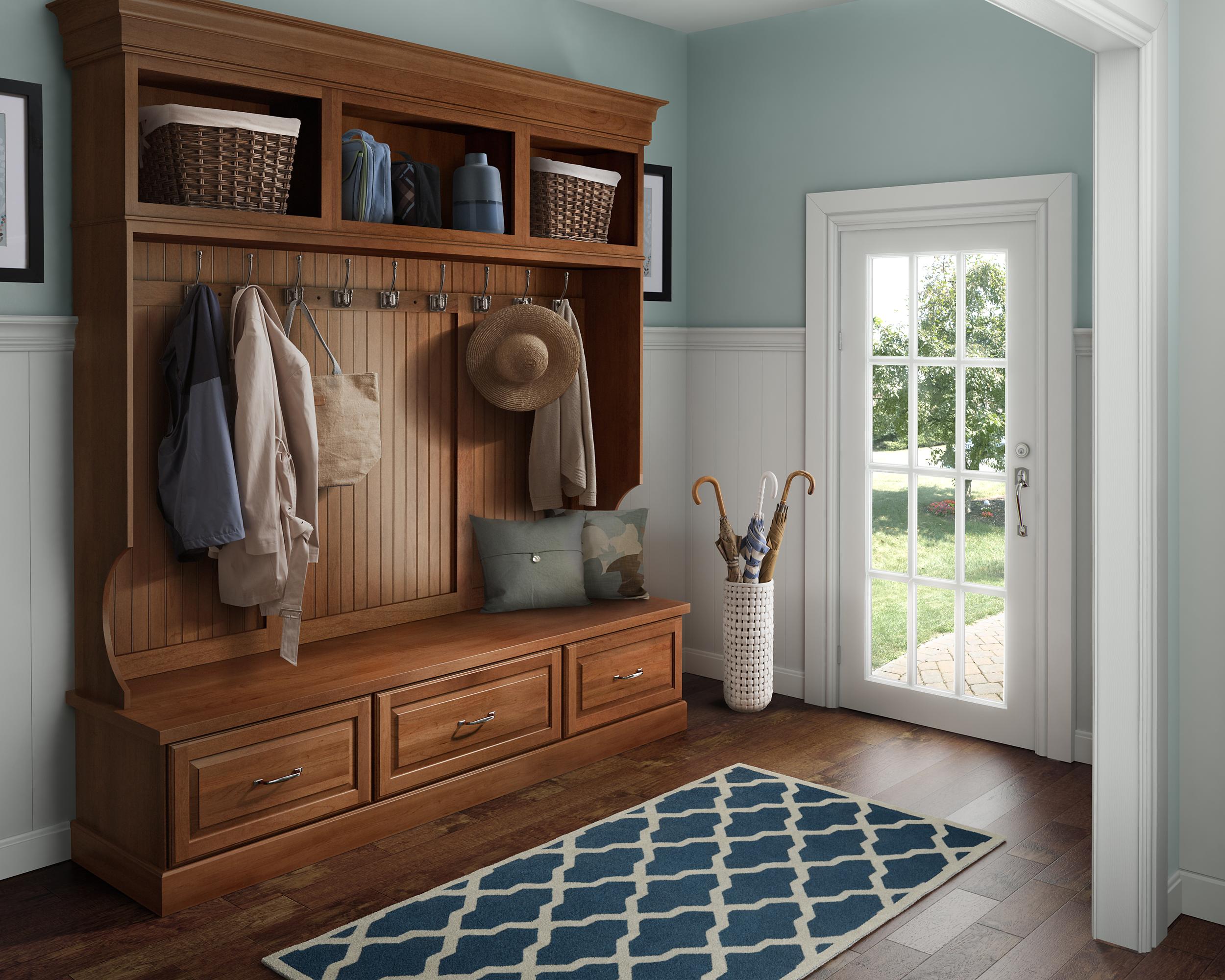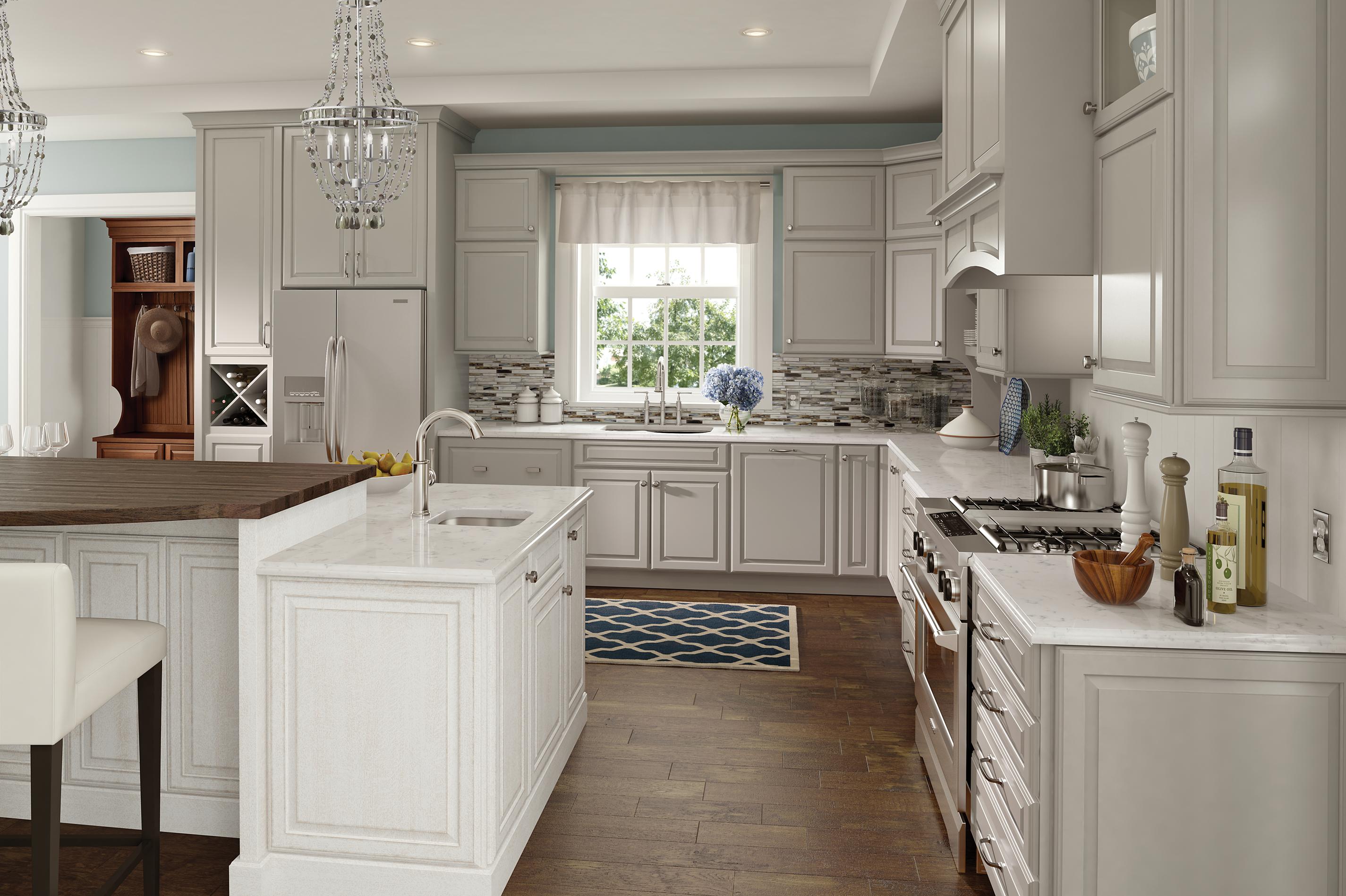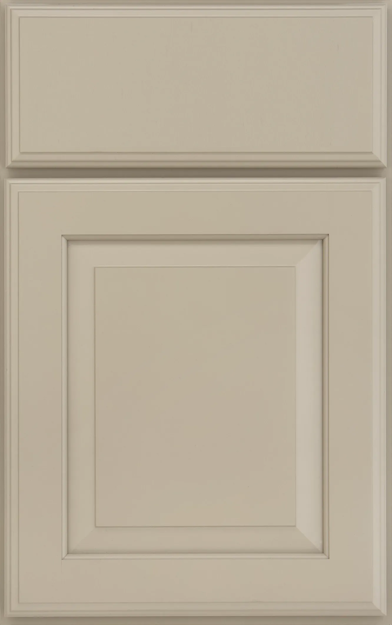 Crowley Raised Panel maple Harbor Mist Sheer; island in oak Cottage White Coastal