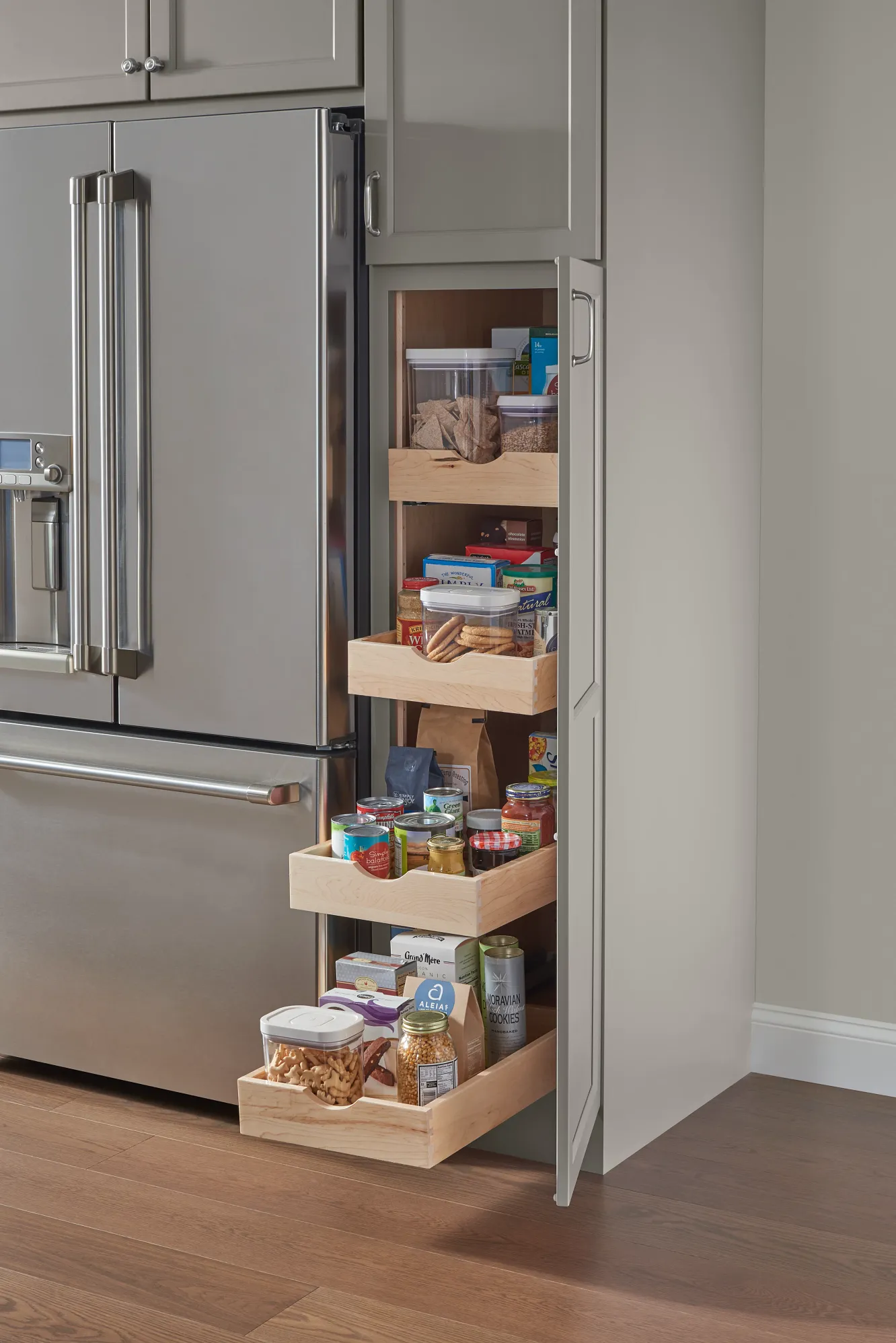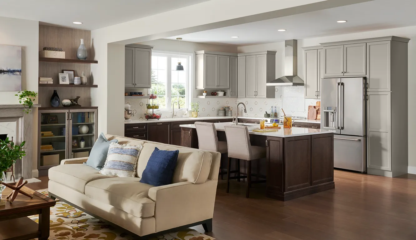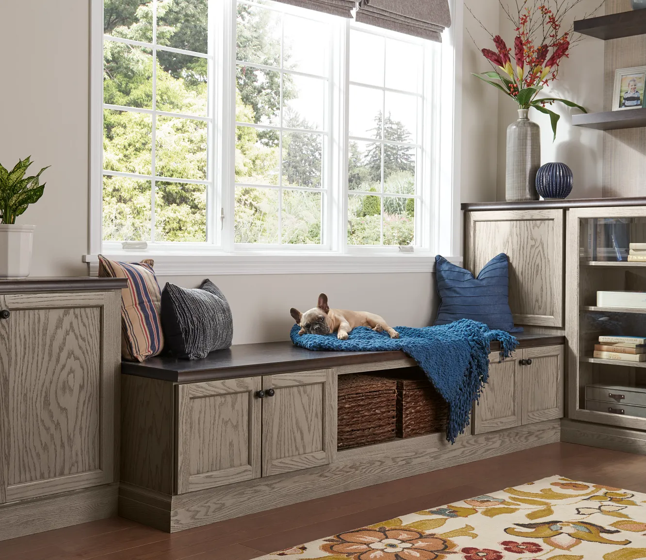 In this transitional design, we layered versatile neutral shades from cool Peppercorn wood stain to warm taupe wall paint.